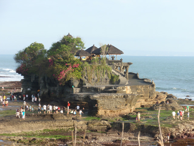 一方、タナロット寺院は海に浮かぶお寺で、干潮時に見えるサンセットが有名です。どちらも外観のみの見学となりますが、たくさんの観光客でにぎわっていました。
