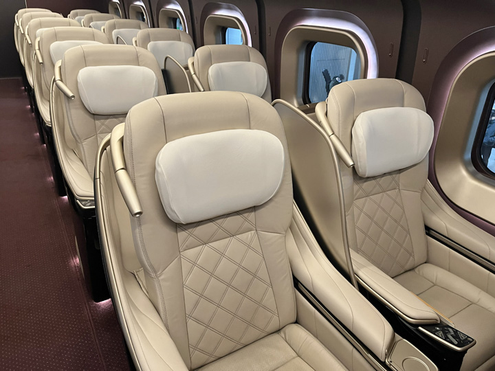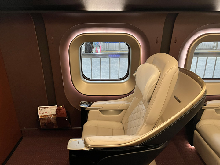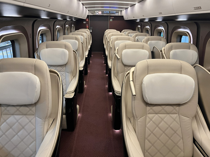 短い停車時間の間にお客さんの乗り降りと車内の清掃を済ませてしまうことに驚くばかり。グランクラスの車両はデッキにも装飾が施されていて、客室への期待が高まります。