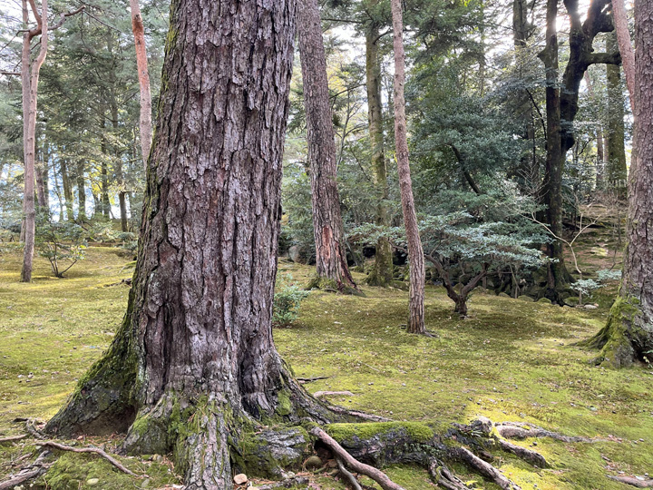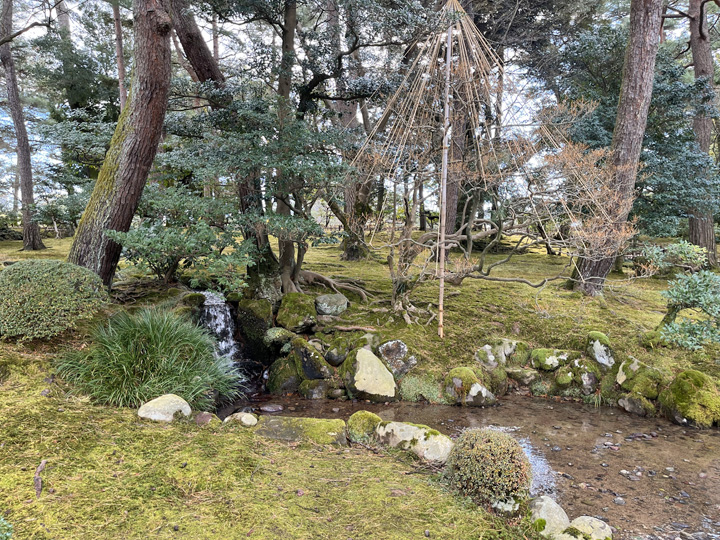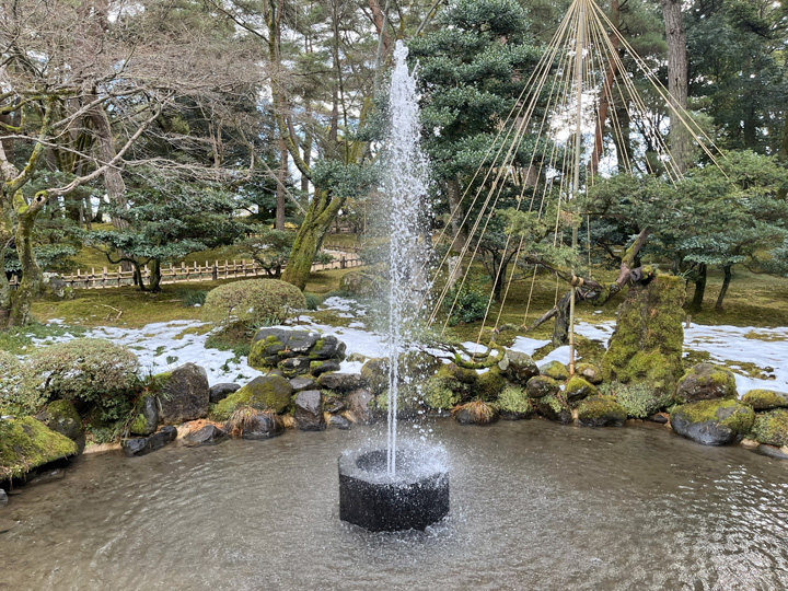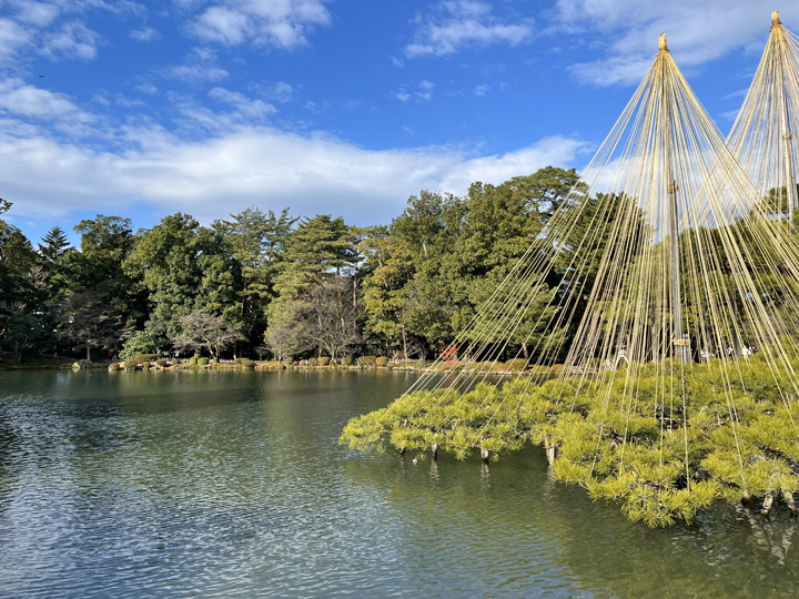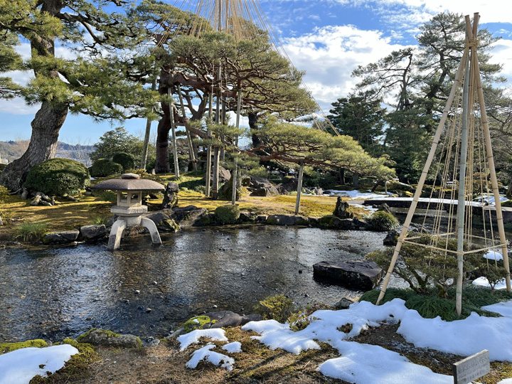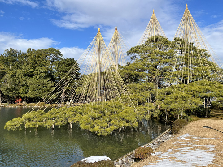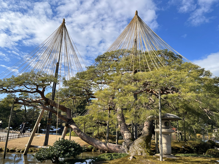 花や紅葉を楽しむ季節ではありませんが、「雪吊り」という補強された樹木を見ることができます。