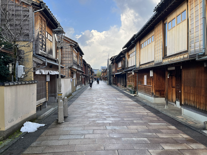 2025年12月30日―― 金沢で有名な観光スポットである「ひがし茶屋街」に行ってきました。すぐ近くには「主計町茶屋街」もあり、歴史を感じさせる町並みを散策することができます。最寄りのバス停では茶屋街に向かうたくさんの観光客の姿が見られました。