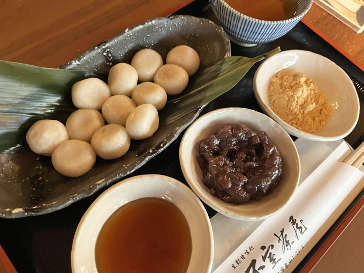 ひがし茶屋街にある「不室茶屋」でお麩のスイーツをいただきました。初めて訪れたときはすでに受付が終了していたので、翌日に朝一で並びました。もちもちした白玉麩は、みたらし・きな粉・粒あんとの相性が抜群。美味しすぎて、おかわりをしてしまいました。