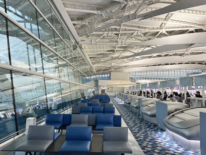 初めて羽田空港の第2ターミナルから国際線に乗りました。チェックインが機械化されているものの、朝から長い行列ができていて、有人カウンターよりも待たされた気がします。顔認証も登録しましたが、これでどれだけ時間短縮になったのでしょうか…。