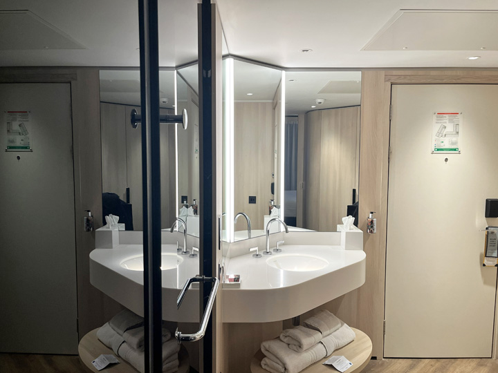 一番安いお部屋の「クイーンルーム」に宿泊しました。お部屋は古さを感じさせない清潔感のある作り。アメニティは必要最低限のものしか付いていないものの、ネスプレッソマシンが設置されていることに驚きました。お水はペットボトルが置いてあるお部屋とそうでないお部屋があるようで、給水機から汲んでくる必要がありました。また、バスタブはありませんが、シャワーヘッドが2つ付いていました。ベッドはダブルサイズが1台、一人での宿泊でしたら広さは問題ありません。