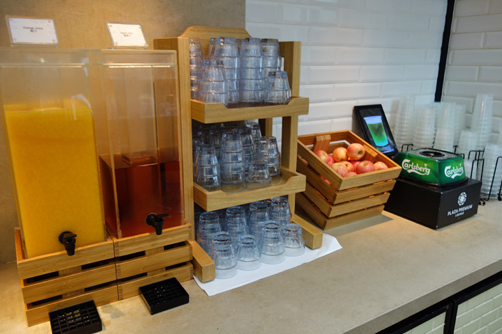 ゲートウェイにある「プラザ・プレミアム・ラウンジ」を利用しました。ラウンジはそれほど広くありませんが、お客さんが少なくて落ち着いた雰囲気がありました。軽食もそれなりに置いてありますし、メインターミナルのラウンジよりも良い気がします。