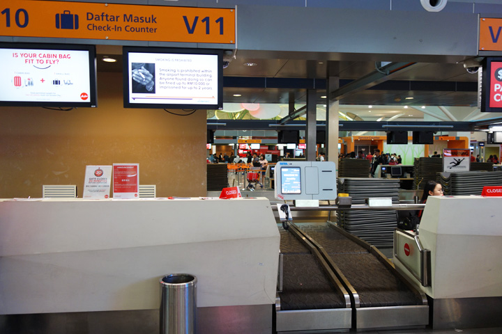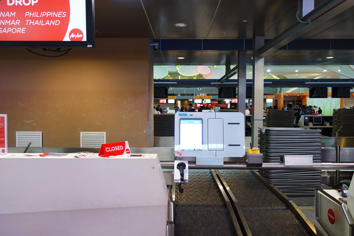 エアアジアといえば、昔はLCCターミナルでしたが、いつの間にか新しいターミナルができていて、KLIAエクスプレスでも行けるようになっていました。手荷物の預け入れは、自分でタグを印刷して預け入れ機で搭乗券とタグをスキャンしました。チェックインカウンターでの手続きよりも時間が掛からないのが良いところです。第2ターミナルは「ゲートウェイ」というショッピングモールが併設されていて、メインターミナルよりも便利な気がします。