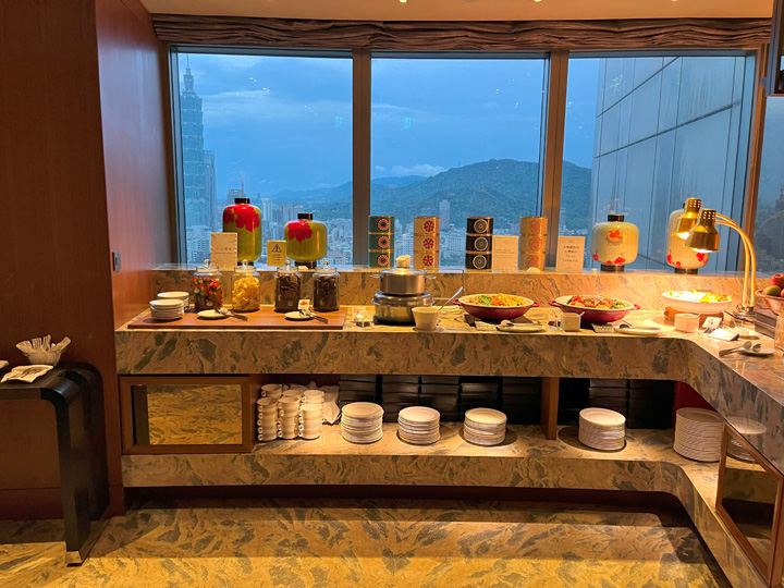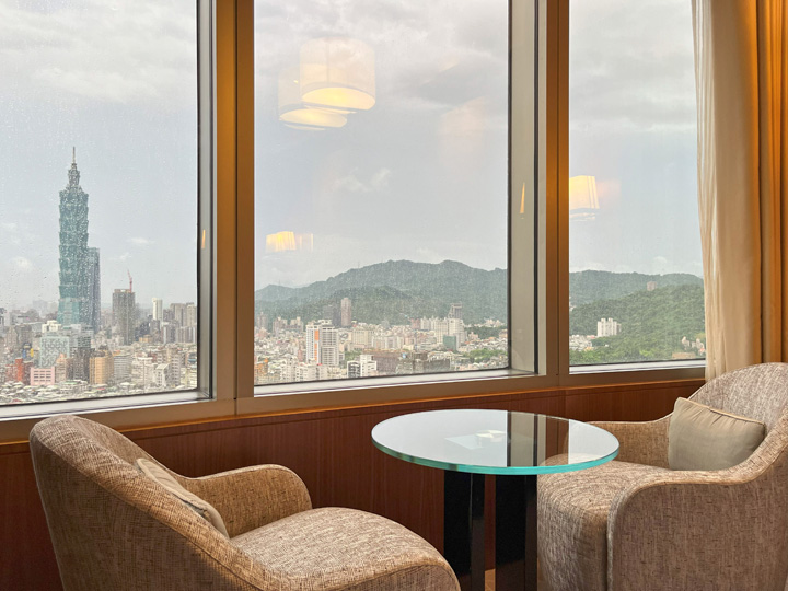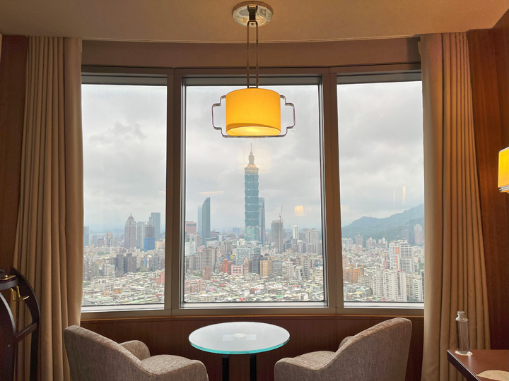ラウンジも高級感が増して、落ち着いた空間にリニューアルされていました。昔はラウンジから台北101は見えなかった記憶があるのですが、リニューアル後は窓側の席から見えるようになっていました。