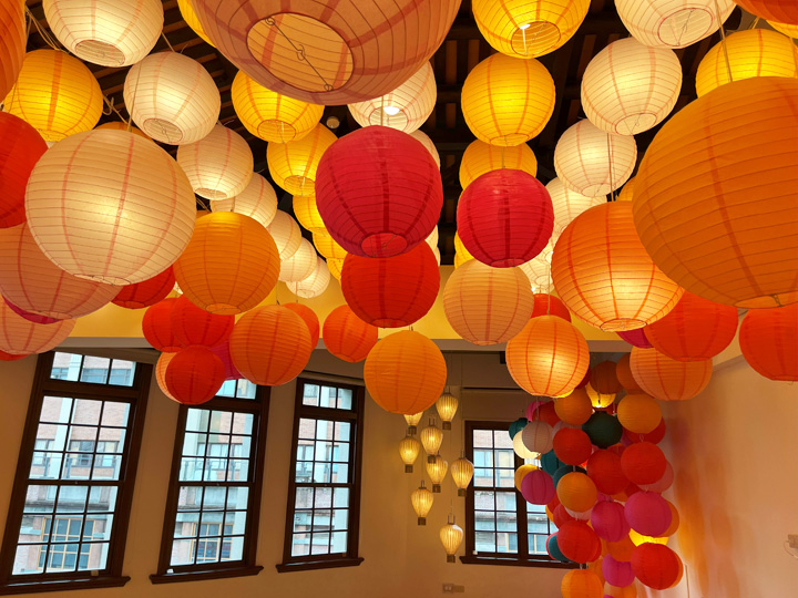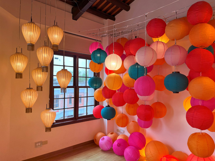 観光案内所「大稻埕遊客中心」の2階と3階では、昔の薬局や喫茶店、学校が再現されていたり、色鮮やかなランタンが飾られていたり、フォトスポットになっていました。