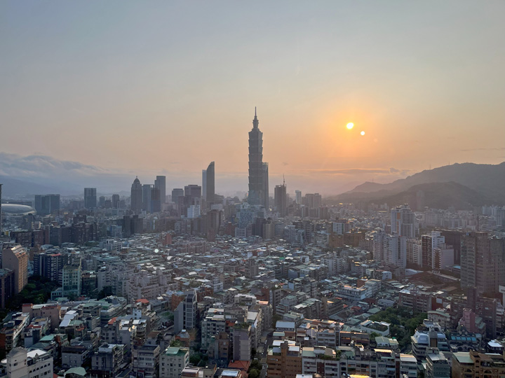 ダイニングルームとベッドルームから台北101を望むことができます。天気が悪い日が続いていて、台北101がはっきり見える時間帯が少なかったのですが、早朝の景色が素晴らしく、毎日清々しい朝を迎えることができました。