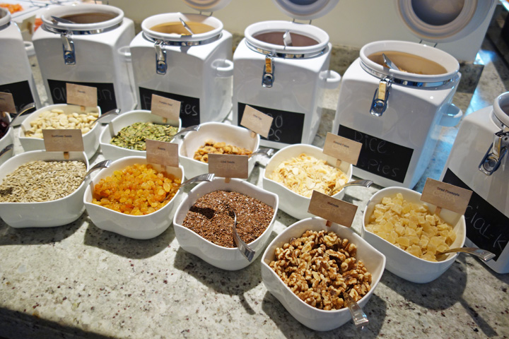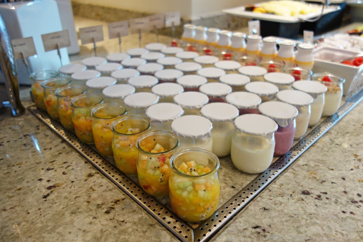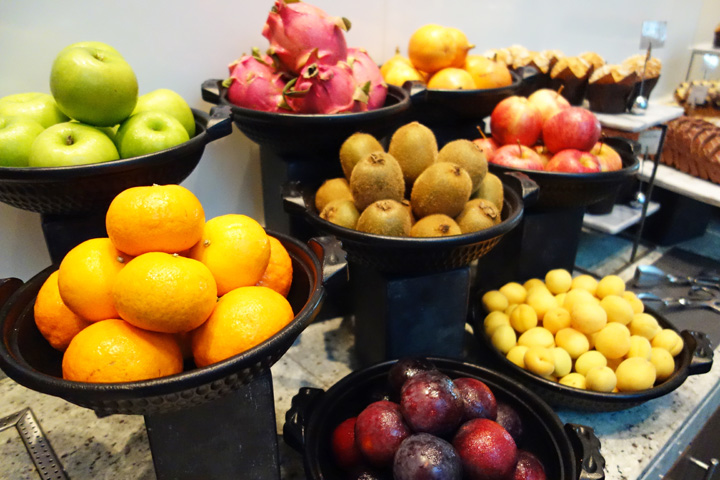 朝食はビュッフェ形式で種類も豊富。朝から点心が食べられました。おにぎりのコーナーもあります(ご飯が柔らかいような…)。また、レストランの入口でウェルカム・ドリンクがもらえます。