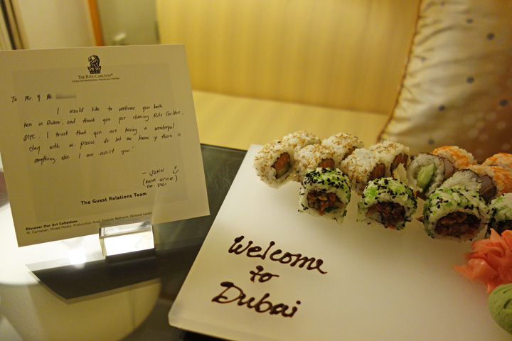 10月23日―― ドバイでは「ザ・リッツ・カールトン・ドバイ・インターナショナル・ファイナンシャル・センター」に宿泊しました。
