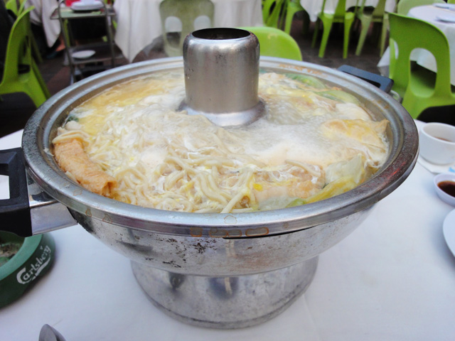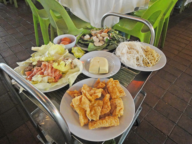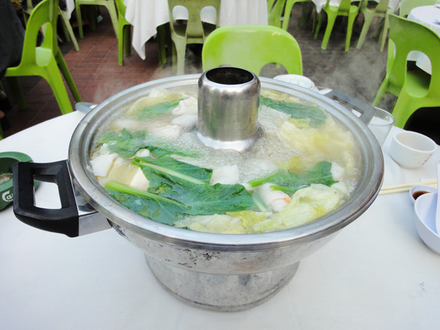 夕方には、パビリオン(ショッピングモール)の近くにある「客家(ハッカ)」というレストランで、名物のスチームボートをいただきました。スチームボートとは火鍋のことで、お肉や魚介など、たくさんの具材が入った鍋料理になります。