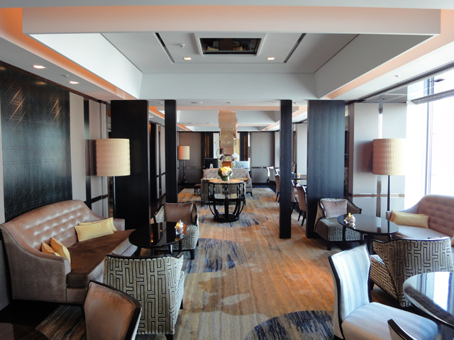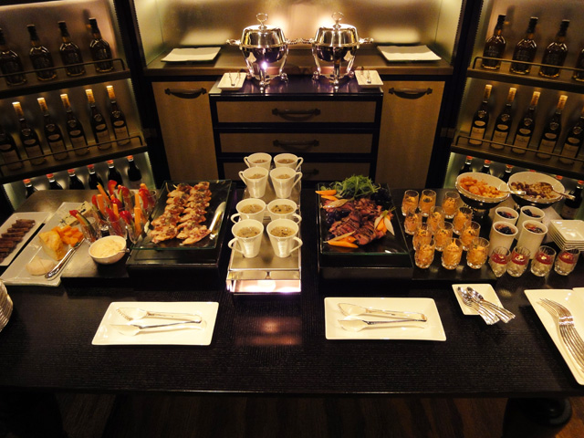 夕方になるとクラブラウンジでカクテルタイムが行われていました。シャンパンやカクテルを飲みながら、夜景を楽しみました。すでにお腹が一杯でしたが、美味しいカナッペの数々に、ついつい飲み過ぎてしまいました…。