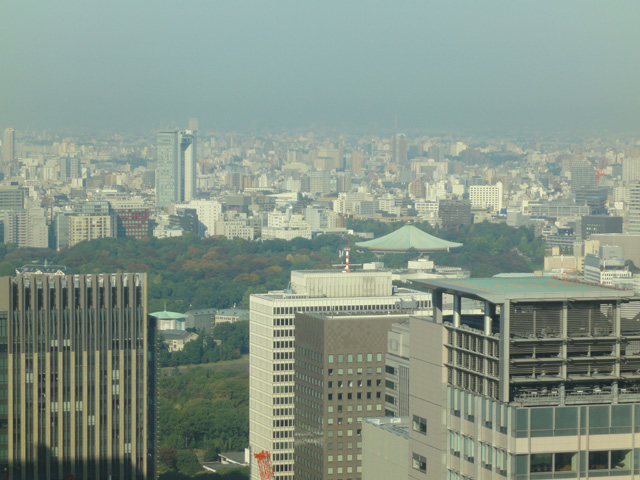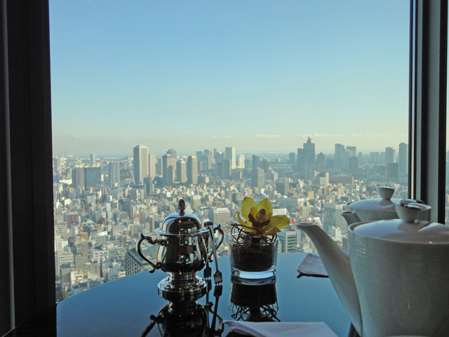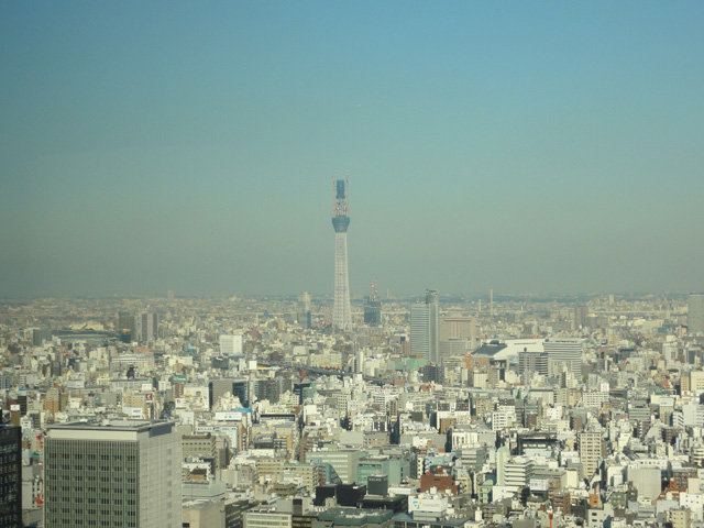 ほぼ貸切状態のラウンジで、高層ビルからの景色を眺めながらアフタヌーンティーを楽しみました。左側の景色を見てみると、工事中の東京スカイツリーが見えました。