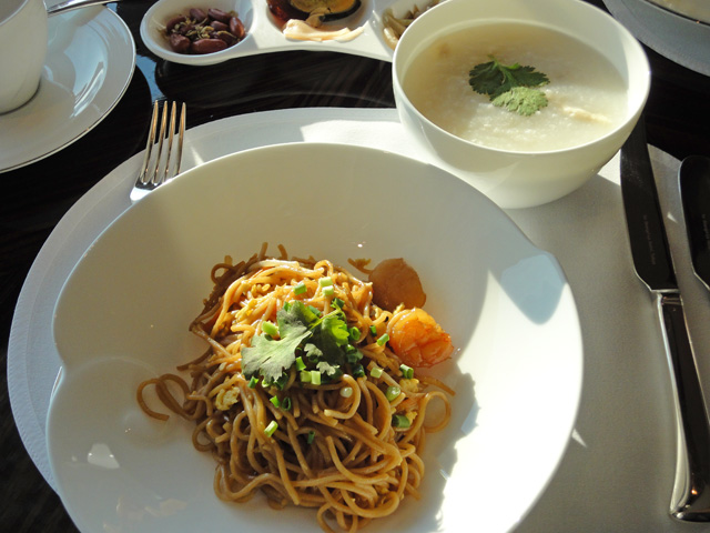 翌朝もクラブラウンジで朝食を取りました。温かいメニューがアラカルトになっていて、評判の中国粥とアジアンスタイルの炒め麺を食べました。