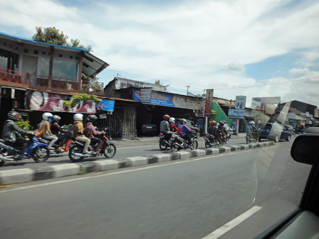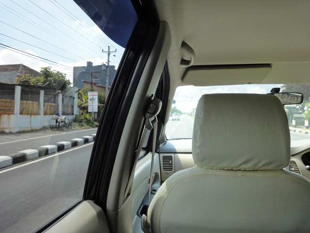 空港からリゾートの送迎を利用しました。空港に横付けされた車に乗ると、さっそくお絞りとお水が出てきました。車の中でお菓子をいただき、ジョグジャカルタの街並みを眺めていると、1時間ほどでアマンジオに到着しました。